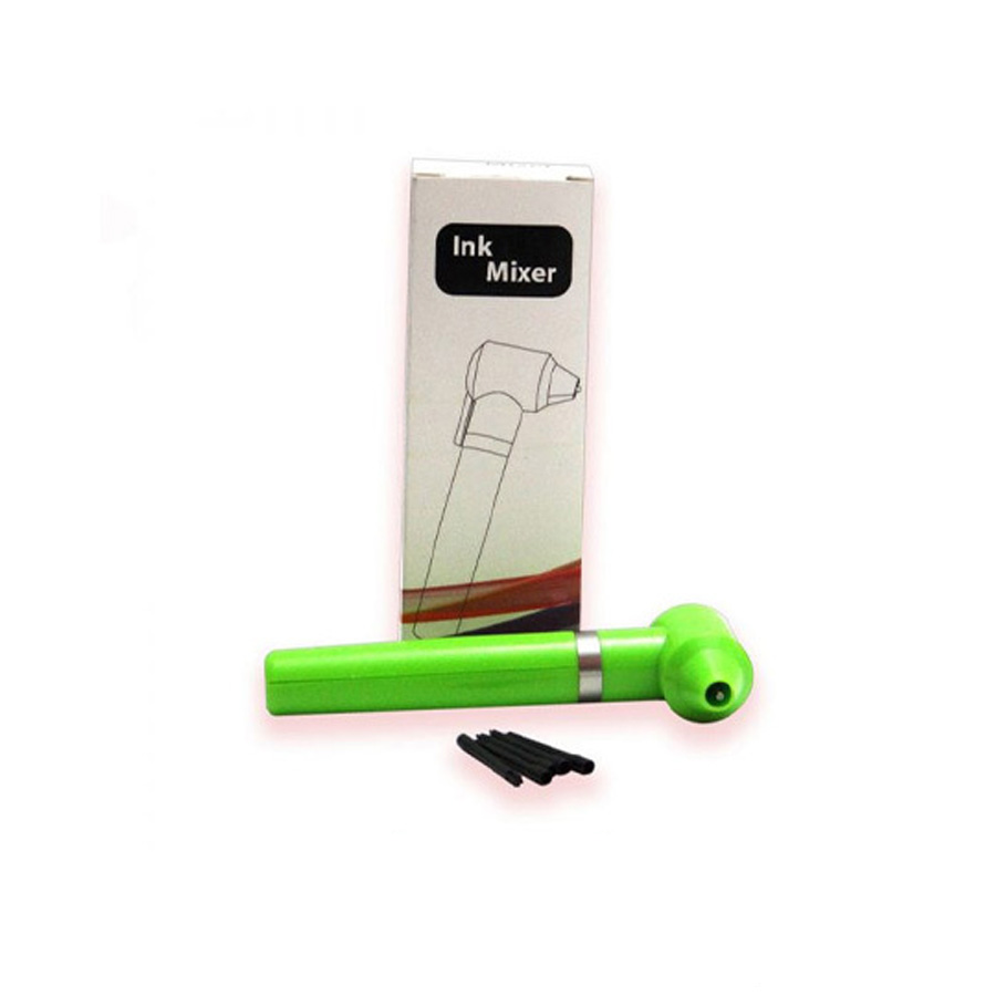میکسر رنگ تاتو (همزن رنگ) از وسیله های بسیار کاربردی است که حجم کمی هم دارد و تنها نیاز به دو باطری قلمی دارد همچنین چند سری دارن که یکبار مصرف نیست و بعد از استفاده میتوان آن سری را شست و دوباره استفاده کرد این سری قابل اتصال به هم هستند که متوان بلند تر شوند. بعضی از تاتو آرتیست ها برای میکس رنگ تاتو از خلال دندان یا میکروبراش ها استفاده کنند که در این صورت نیاز است زمان بیشتری صرف کرد تا از ترکیب رنگ های تاتو مطمئن شد.