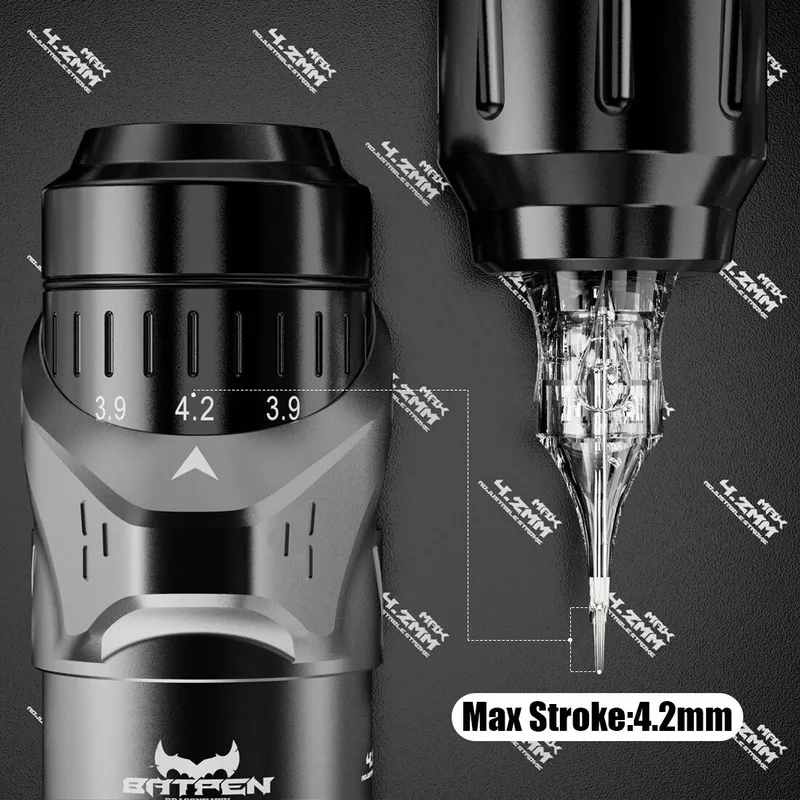 با استفاده از یک سیستم کلیک راحت، هنرمندان می توانند از حداکثر 7 گزینه طول ضربه برای طیف گسترده ای از رویه ها، از جمله آستر، بسته بندی رنگ، سایه زدن و موارد دیگر لذت ببرند. این سیستم راحت به هنرمندان این امکان را می‌دهد که قلم Fold را در کیسه نگه دارند و در حین تنظیم طول ضربه، از خالکوبی بدون وقفه و بدون درز اطمینان حاصل کنند. جوهر را به آرامی و روان به پوست منتقل می کند. مناسب برای انواع پوست قاب ساخته شده از آلیاژ آلومینیوم استاندارد و حک شده CNC. مونتاژ با دست، بدون زحمت برای پوشش و محافظت