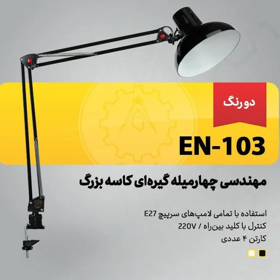 چراغ ناخن کاری چهار میله گیرهای کاسه بزرگ EN-103 یک ابزار حرفهای است که برای روشنایی دقیق در کارهای ظریف مانند کاشت ناخن و سایر فعالیتهای زیبایی استفاده میشود. این مدل به دلیل طراحی خاص با چهار میله و گیرهای، امکان تنظیمات گسترده و انعطافپذیری در زاویه و موقعیت نور را فراهم میکند.