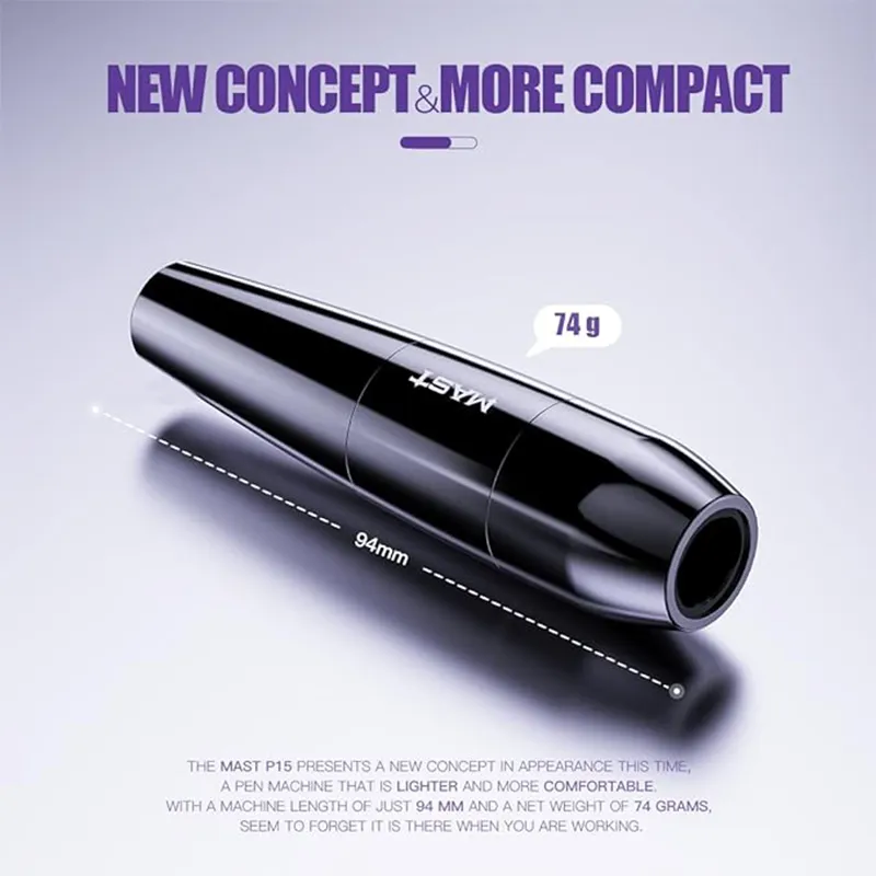 دستگاه قلم خالکوبی مست: بدنه قلم تاتو P15 ساخته شده از آلیاژ آلومینیوم، پایدار با لرزش کمتر، کارکرد آسان تر. دوره کاری طولانی مدت و سرعت کار بالا اما به طور پیوسته و کم صدا کار می کند.